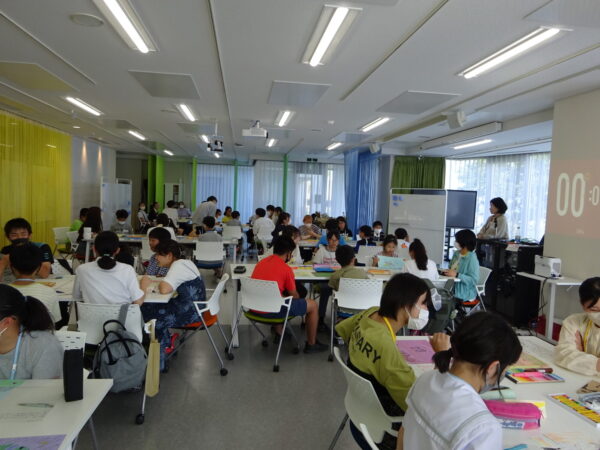 基礎コース受講生は、他の受講生やメンターと一緒にお絵描きをすることを通じて、多様な人たちと共に学ぶことを体験しました。また、マスタコース受講生は、初めに「研究活動の基礎的な考え方」をテーマにした講義を受講したのちに、受講生と受講生の保護者、学生メンターとの三者で、研究計画について意見交換を行いました。保護者向け分科会では、神戸みらい博士育成道場で育成したい人材像と各セッションの進め方に関する説明があり、保護者の方々と担当者の間で質疑応答が行われました。